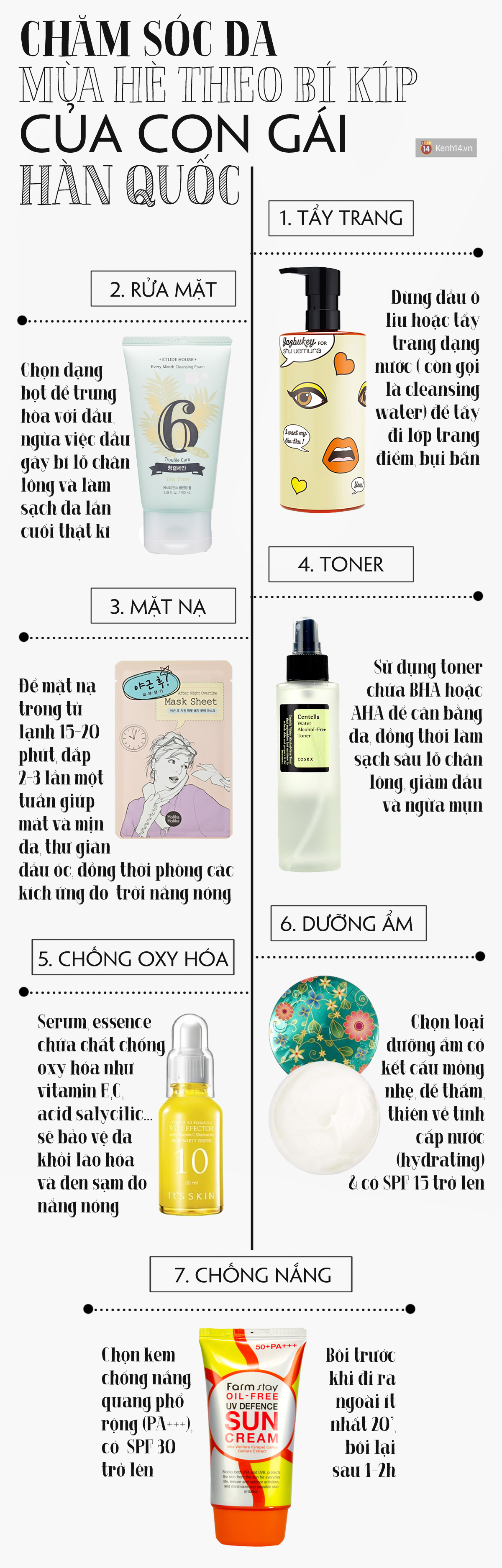 Áp dụng ngay 7 bước dưỡng da tiêu chuẩn sau của các bạn Hàn để da sạch mụn, khô ráo mùa hè bạn nhé!